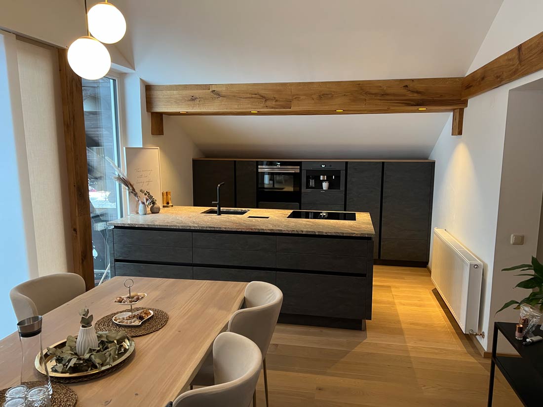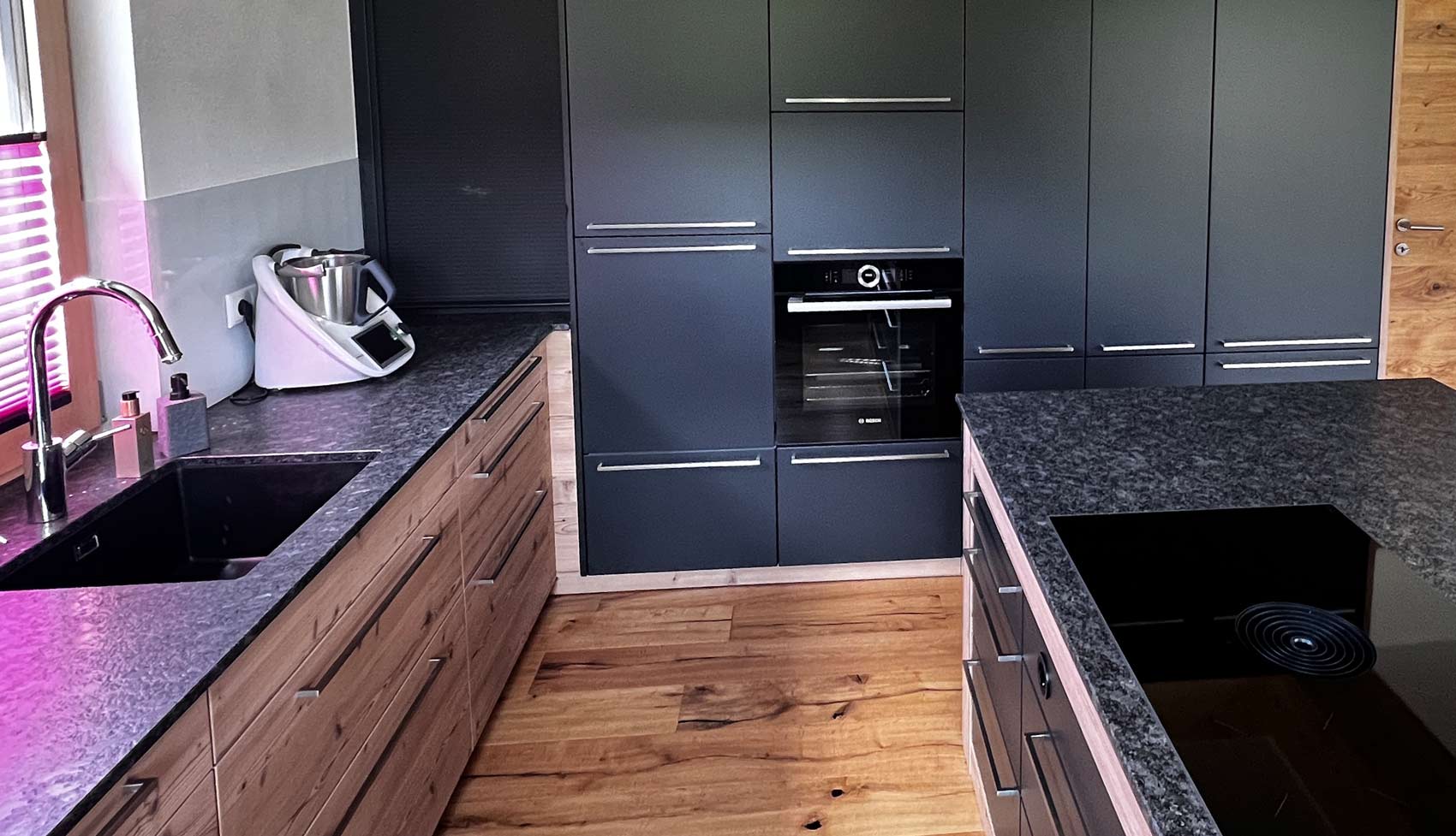 Wir planen, fertigen und montieren deine Traumküche genau nach deinen Vorstellungen. Jedes Detail wird individuell auf deine Wünsche abgestimmt, sodass du einen Raum bekommst, in dem du dich rundum wohlfühlst. Und der perfekte Essbereich gehört natürlich genauso dazu, damit alles harmonisch zusammenpasst und du die besten Momente in deinem neuen Lieblingsraum genießen kannst.
