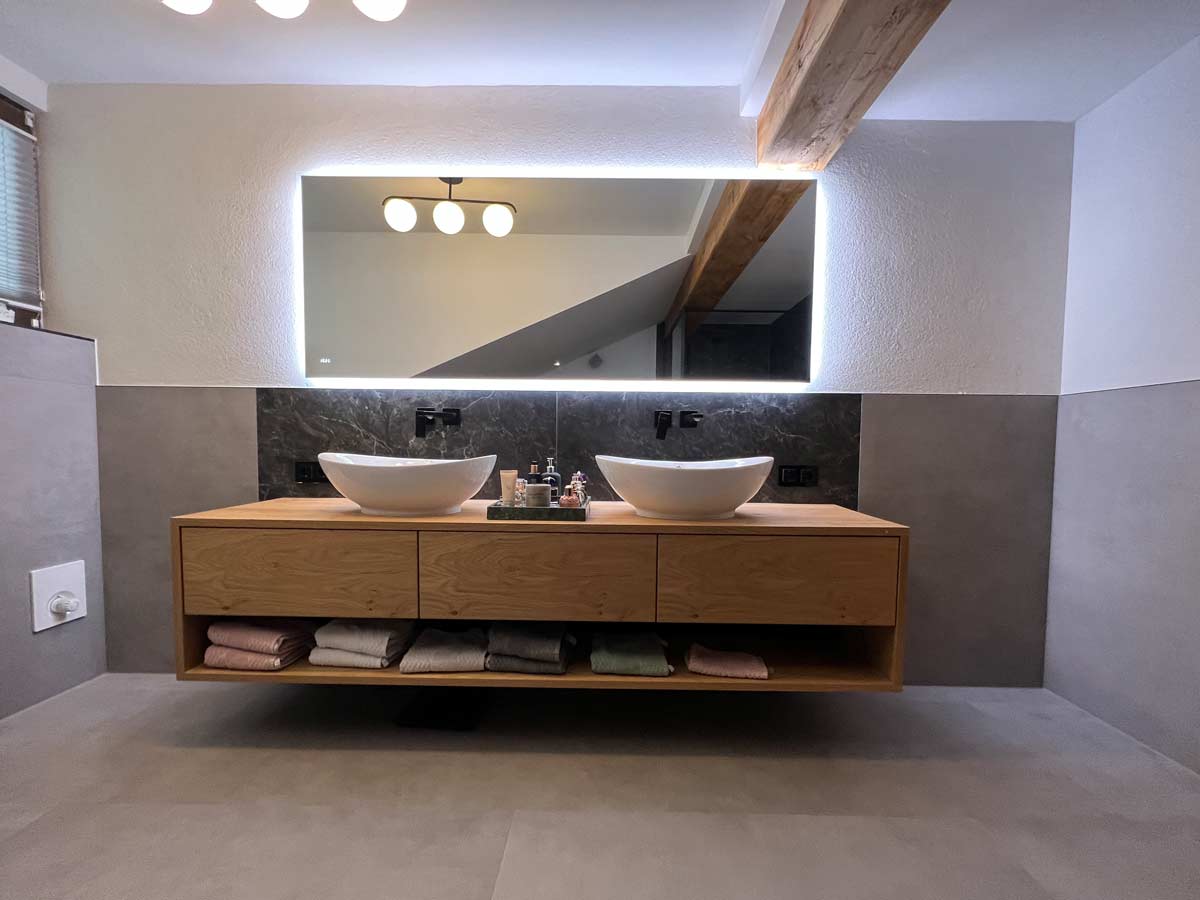 Ob ein Schrankraum mit reichlich Stauraum, ein individuelles Bücherregal für deine Lieblingsbücher oder stilvolle Badezimmermöbel für deine Wellnessoase – wir legen Wert auf hochwertige Materialien, ansprechendes Design und vor allem Langlebigkeit. Denn wir möchten, dass du lange Freude an deinen Möbeln hast.
